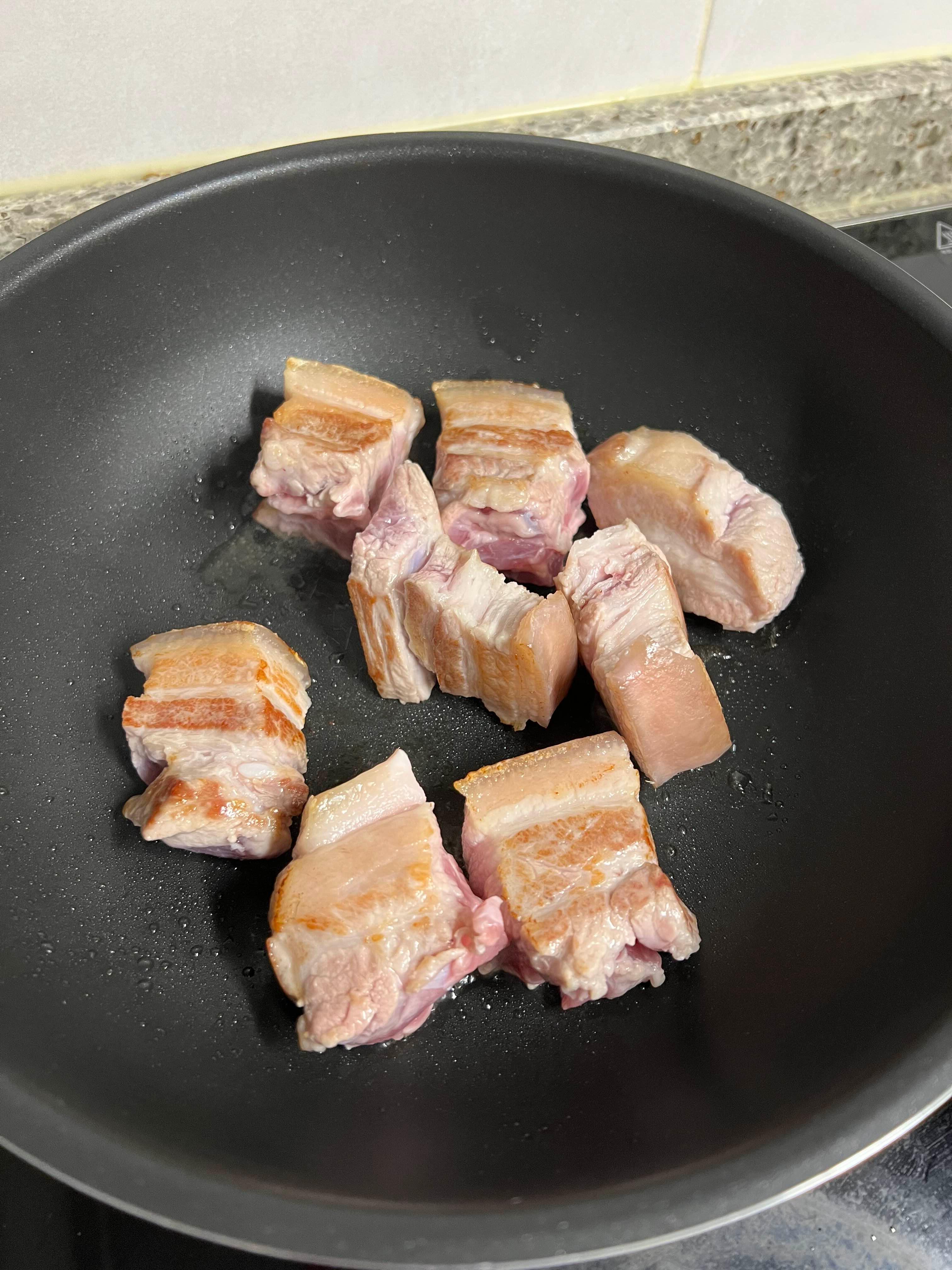 1. 삼겹살은 큐브 모양으로 썰어줍니다.
